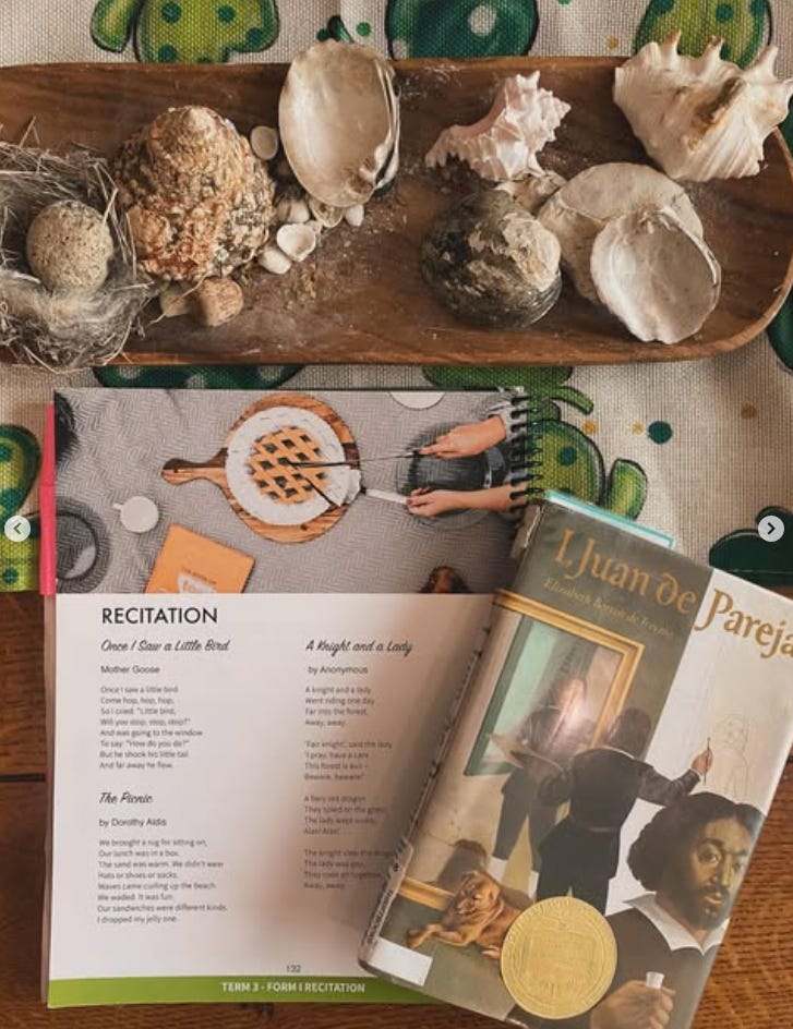 After our Benediction Table, we take a quick break, then resume with our Beauty and Morality block. This term, we are tweaking our beauty and morality block to include daily recitation and a fine arts study.