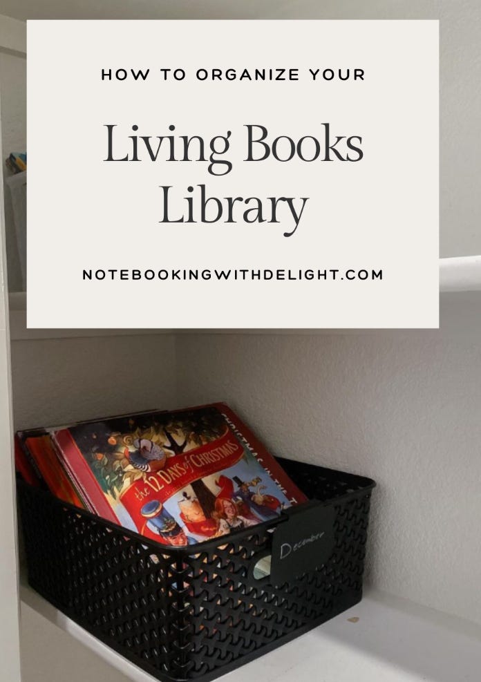 Organizing your living books into monthly bundles will allow you to reread them every year and make it exciting to bring them out each year.