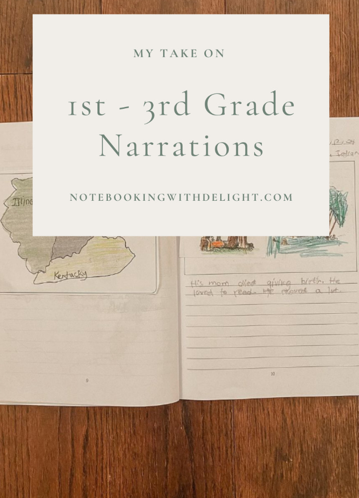 In first grade, children are learning how to read and write, so it is not a requirement for them to have a written narration. A verbal narration will suffice. That said, I do write down my daughter’s narration and then have her trace it. As time goes on, she will be able to copy her narrations from the chalkboard.