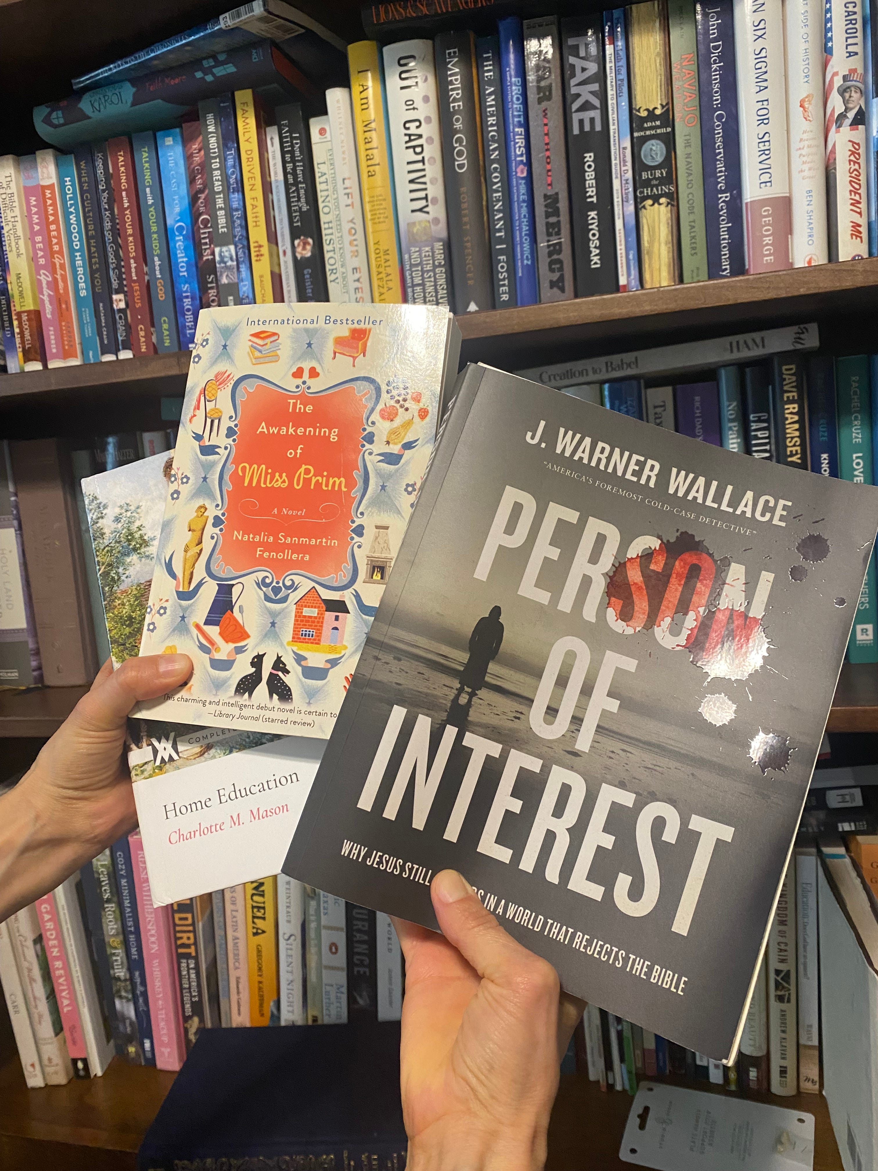 My mother-culture currently includes Person of Interest by J. Warner Wallace. In this book, Wallace uses his detective skills and background to see if Jesus is truly who he says he is by cross-examining him with other religions and tales of the time. Truly fascinating.