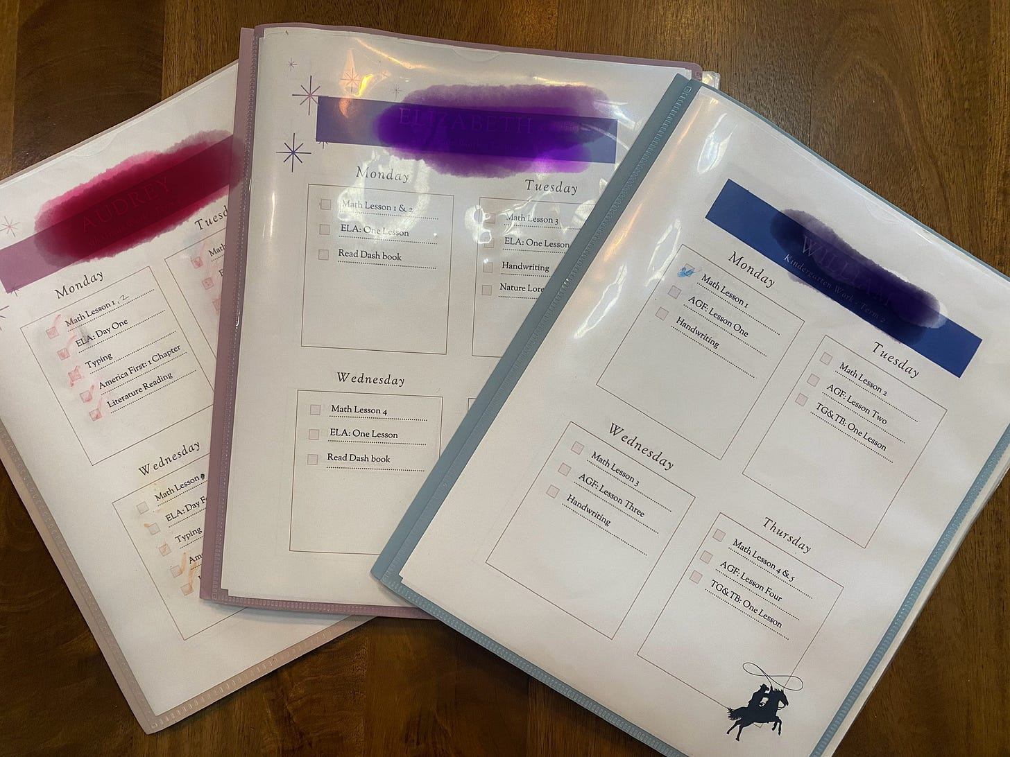 Your planner is for family and core subjects. Subjects such as math and English language arts can be given to them independently.