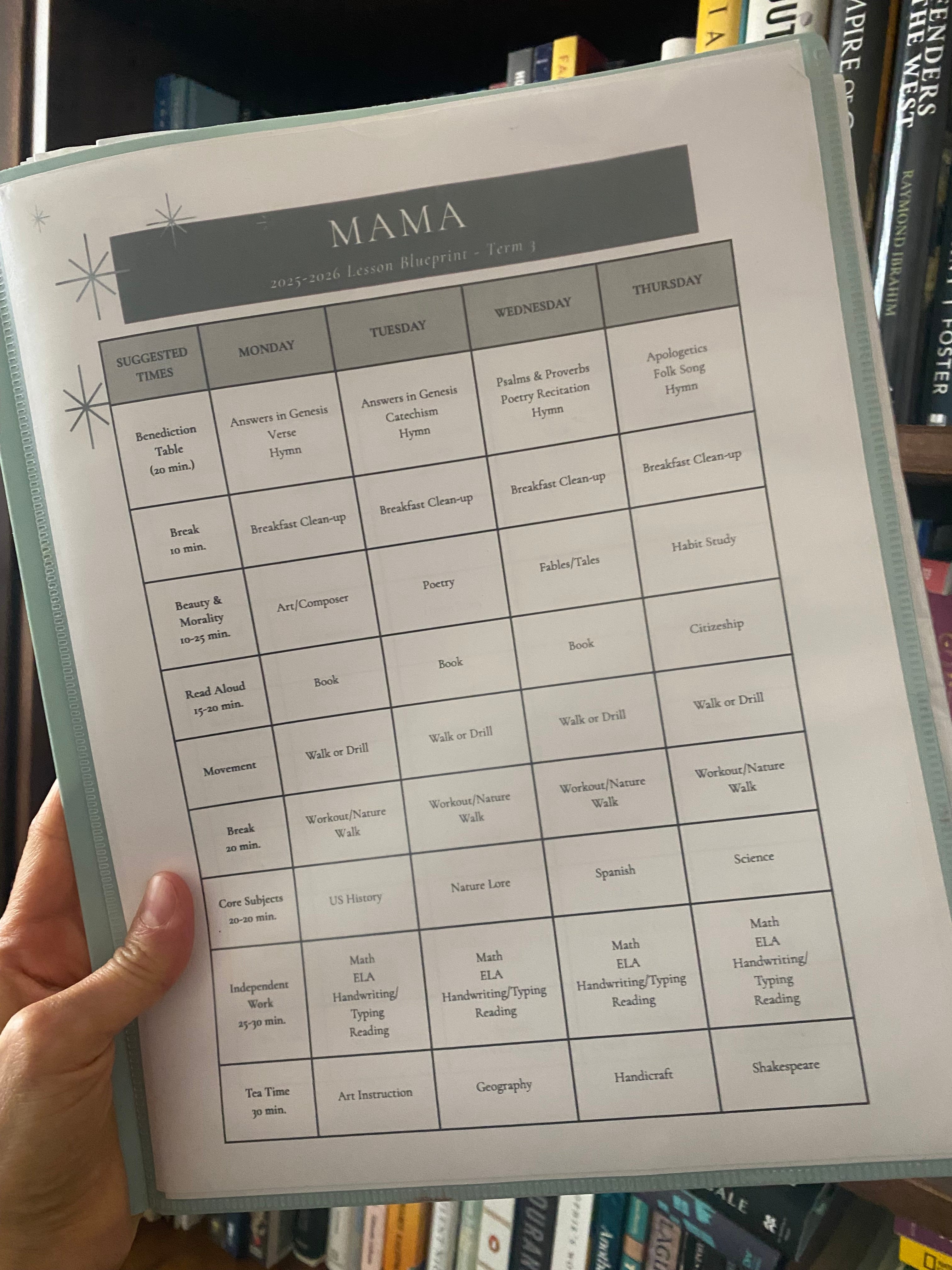 Our Benediction Table now includes a Bible and apologetics lesson, a recitation loop (scripture, catechisms, poetry, and folk song), and a hymn. I think this is going to work out really well.