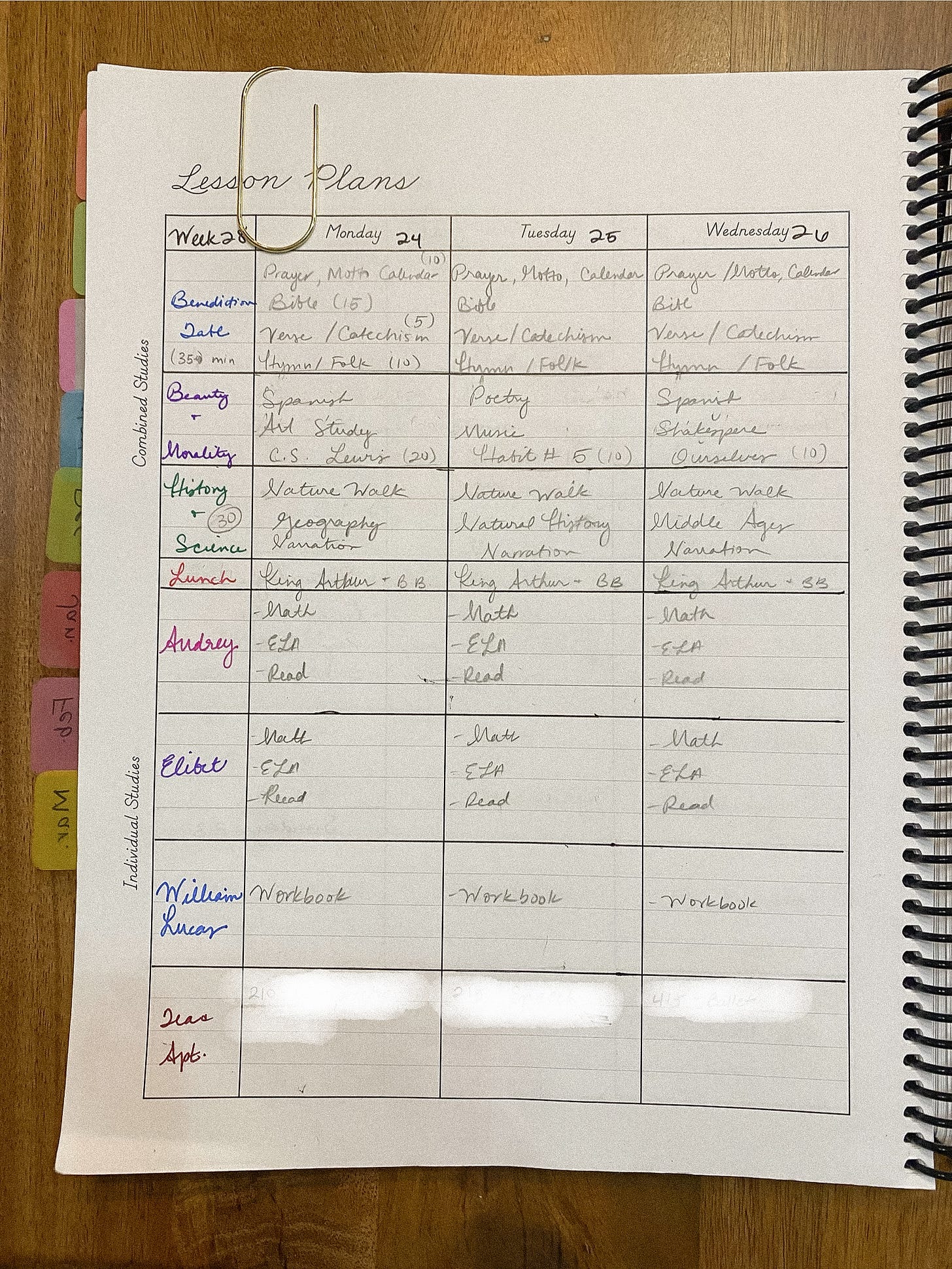 I’m starting to alternate Spanish and Poetry, followed by Art Study, Music Study, Shakespeare, and tales. Finally, we finish the block with morality. This includes reading the story of C.S. Lewis by Leah Boden, Habit Training (twice a week), and Ourselves by Charlotte Mason.