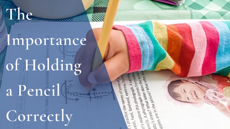 I can see this being a skill that is overlooked. But I agree with Miss Charlotte Mason. Over the years of teaching, I have seen many students hold the pencil incorrectly and develop poor handwriting, often accompanied by a dislike for writing. This simple tip can help.